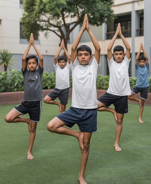 Yoga, breathing practices, and mindfulness sessions support focus, stress management, emotional regulation, and inner calm.